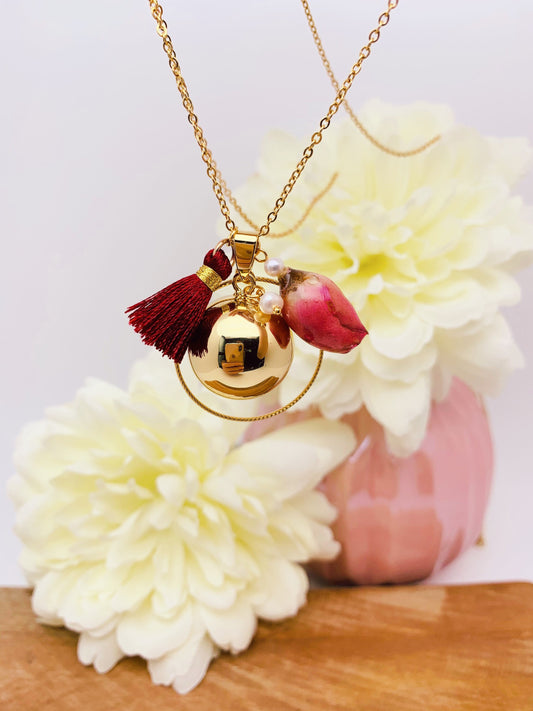 Le bola de grossesse est un bijou porté par les femmes enceintes depuis des générations dans plusieurs cultures. Suspendu sur un long cordon ou une chaîne, ce pendentif sphérique produit un tintement discret lorsqu’il bouge. Ce collier de grossesse se porte généralement à partir du 4ᵉ ou 5ᵉ mois de grossesse, lorsque le ventre commence à s’arrondir et que les mouvements deviennent plus perceptibles.