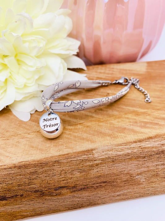 Bola de grossesse sablé argent et breloque en pierre semi précieuse