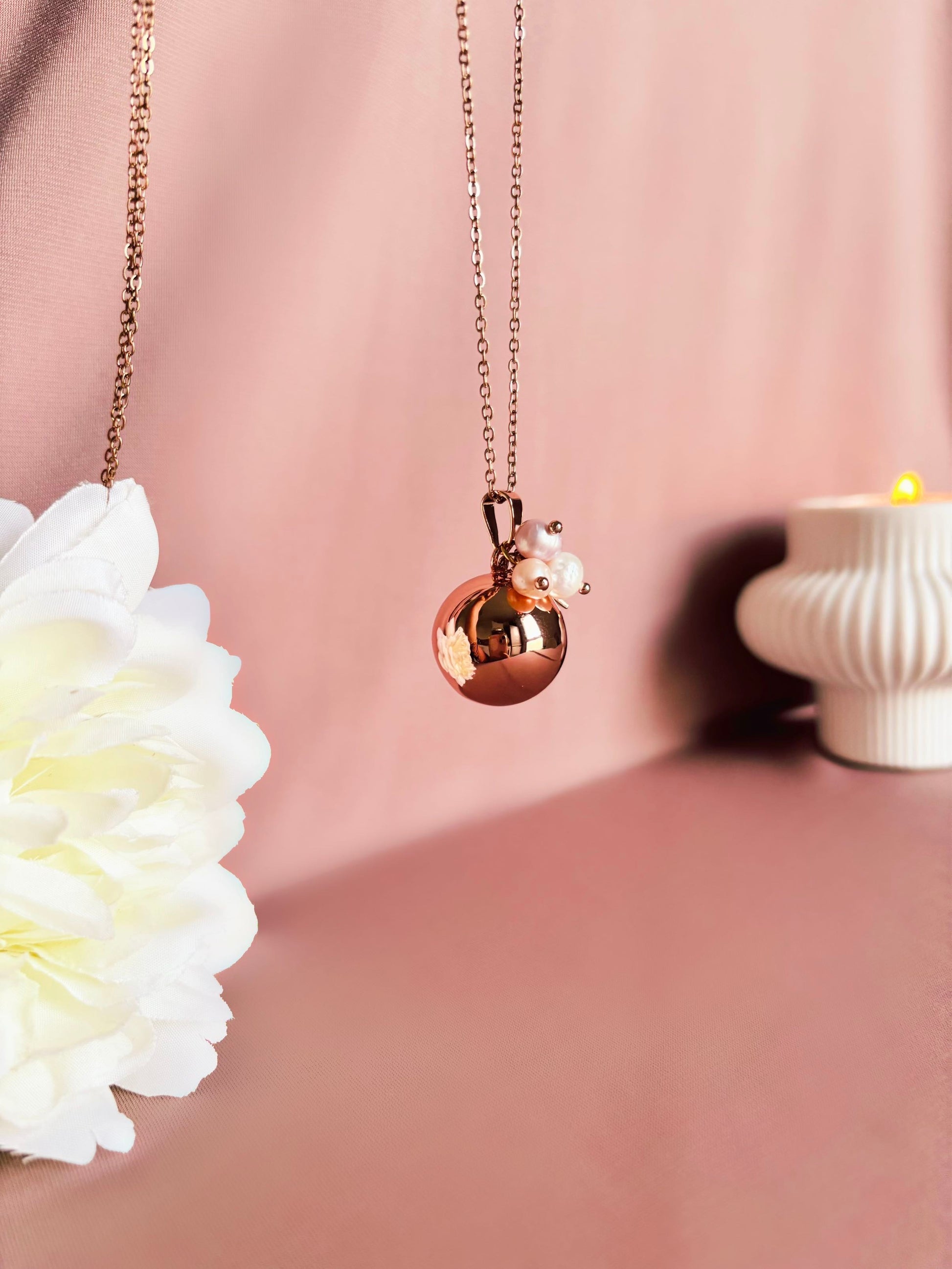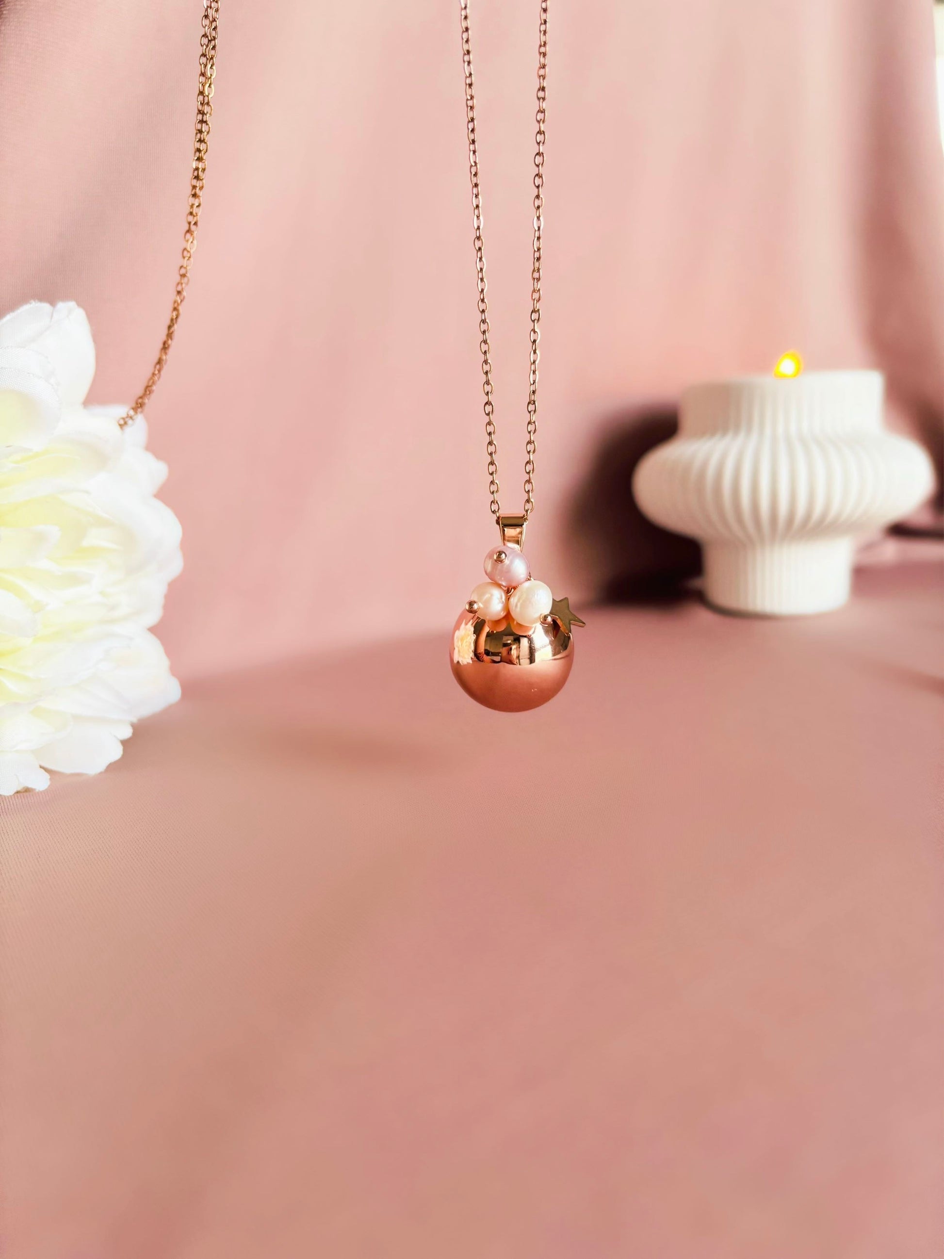 Bola de grossesse or rose et breloque en perles d’eau douce