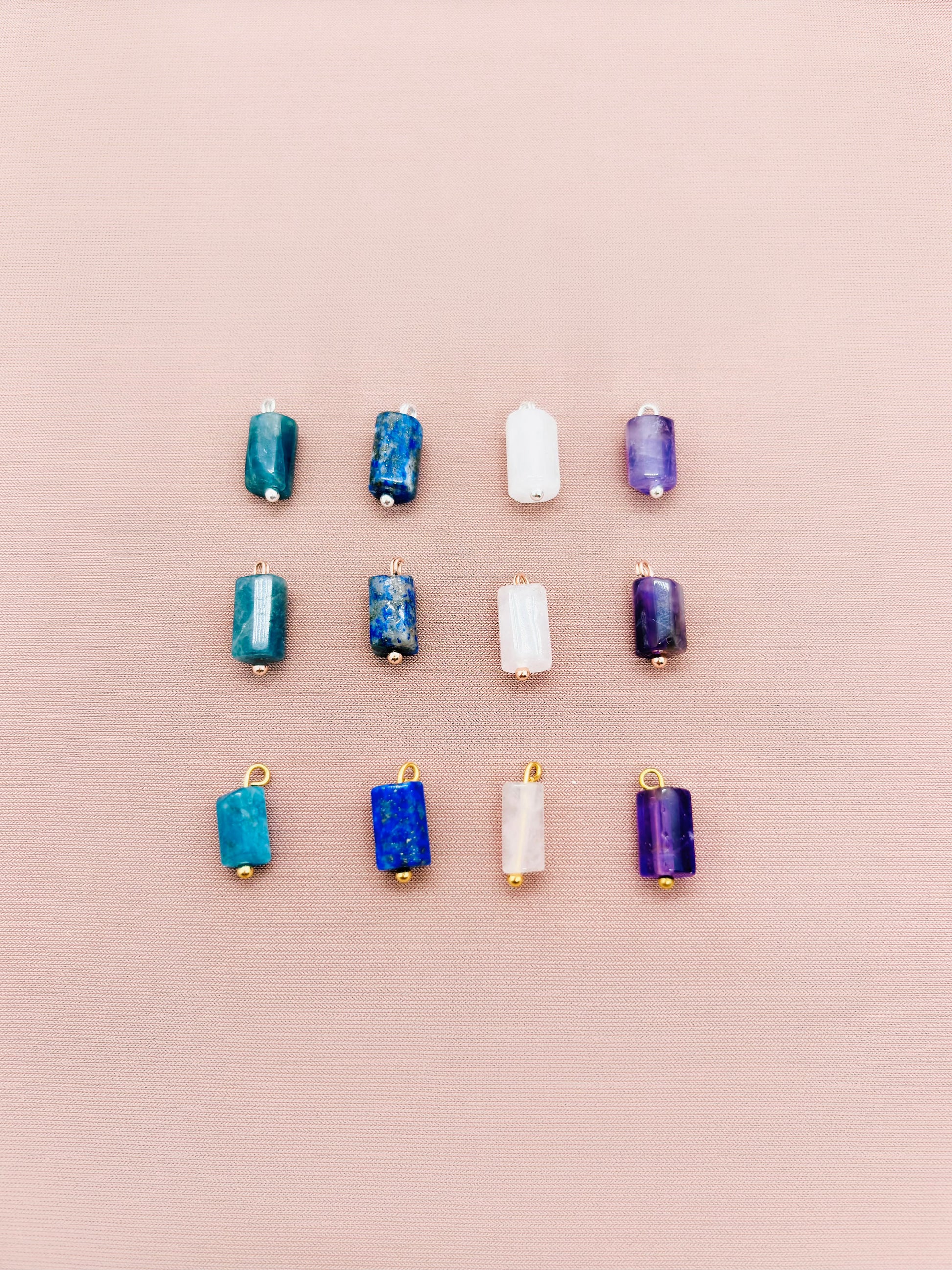 Associez plusieurs charms pour créer une composition (ex : charms en pierres naturelles + médaillon graver) et composer un bijou qui vous ressemble.